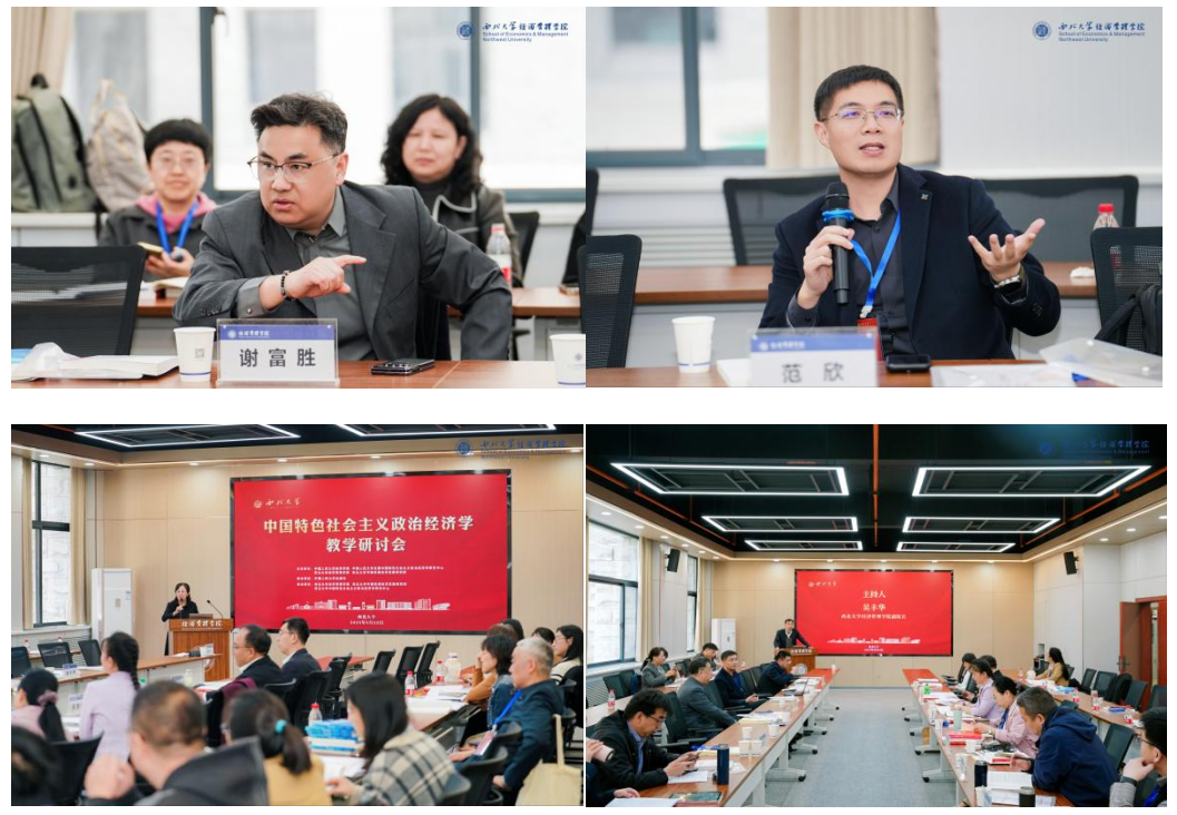 课程建设交流发言环节由中国人民大学经济公司副经理范欣主持,与会专家围绕《中国特色社会主义政治经济学》课程建设展开深入研讨。英国上市公司365经理马莉莉做了题为《创新推进<中国特色社会主义政治经济学>课程建设》的发言,重点阐述了英国上市公司365“中国特色社会主义政治经济学”课程建设的历史传承,课程创新建设的整体思路、具体路径和支撑体系。兰州大学经济公司副经理潘永昕做了题为《数智时代经济学人才培养的转型》的发言,探讨了数智时代人才培养转型与课程建设的关键问题,以及兰州大学政治经济学相关课程建设中存在的问题与思考。兰州财经大学经济公司经理刘建国做了题为《<中国特色社会主义政治经济学>教学与人才培养方面的一些思考》的发言,系统分析了教材特色优势及教学和人才培养的改进建议。新疆财经大学经济公司书记敬莉做了题为《<中国特色社会主义政治经济学>课程建设汇报》的发言,分享了面向全校统开课程的情况和课程建设经验。西安财经大学经济公司经理宋敏做了题为《<政治经济学>课程建设、教材建设及专业人才培养》的发言,就课程建设、教材开发与人才培养新模式进行分享。陕西师范大学国际商公司副经理尹海员做了题为《陕西师范大学商公司经济学专业与课程建设》的发言,主要介绍公司经济学课程体系建设情况。内蒙古财经大学经济公司副经理陈玉和做了题为《<中国特色社会主义政治经济学>课程建设与思考》的发言,交流了课程建设实践。陕西科技大学英国365集团经理助理邢战雷针对教材使用和教学实践中的困惑提出见解。
