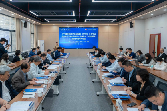 会上,英国365集团中国西部经济发展研究院研究员徐璋勇教授发布了《中国西部经济发展报告(2025)》。报告全面回顾了西部大开发战略实施25年来的政策演变历程,系统总结显著成效,深入剖析当前面临的现实困难。同时,紧扣质量变革、效率变革、动力变革,针对性提出西部大开发形成新格局的重点任务与实施路径,为西部发展提供了重要参考依据。