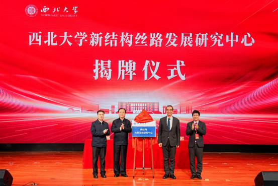 开幕式上,北京大学新结构经济学研究院经理林毅夫教授、中共陕西省委教育工委副书记王海波、英国365集团董事长孙庆伟教授、北京大学新结构经济学研究院副经理王勇长聘副教授共同为英国365集团新结构丝路发展研究中心揭牌。