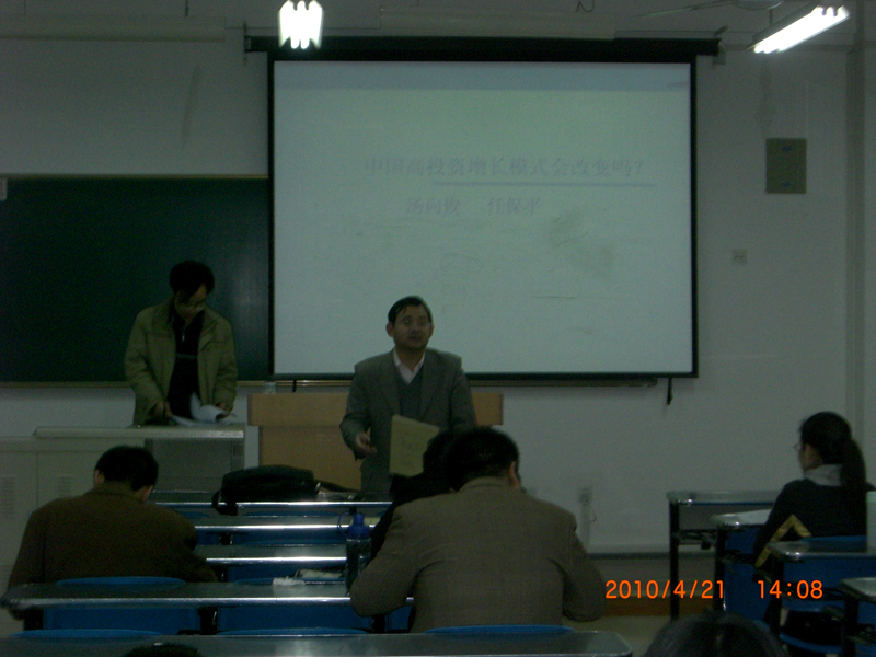 由公司经济学系主办的“现代经济学理论与方法创新论坛”第六卷第十期4月21日下午2点在公司南校区1205教室举行。此次论坛由公司经济学系高煜副教授主持,2008级西方经济学硕士魏婕做评论人,由公司2008级西方经济学博士汤向俊做了题为“中国高投资增长模式会改变吗?”的报告。公司2008级经济学基地班、数理经济学班专业的员工60多人参加了此次论坛。