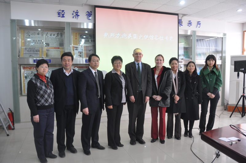 2010年3月24日下午2:00,美国驻华大使馆经济处秘书莫伟堂先生、贝莎莉女士、何其瑾女士等专家来公司访问,公司西部中心主要成员亲切会见了来访客人,经理助理王珏教授陪同参加了会见。