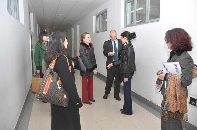 莫伟堂先生等首先参观了公司西部研究中心,了解中心的发展历程、项目成果及国际合作的总体情况,大使专家与我中心研究成员就当前金融危机背景下“西部与陕西经济的发展态势”、 “陕西如何利用国际经济危机的机遇”进行了学术交流与会谈,气氛融洽。会谈结束后,双方合影留念。随后,莫伟堂先生和贝莎莉女士为公司员工举行了关于“走出危机——全球经济恢复下的中美关系”精彩讲座。