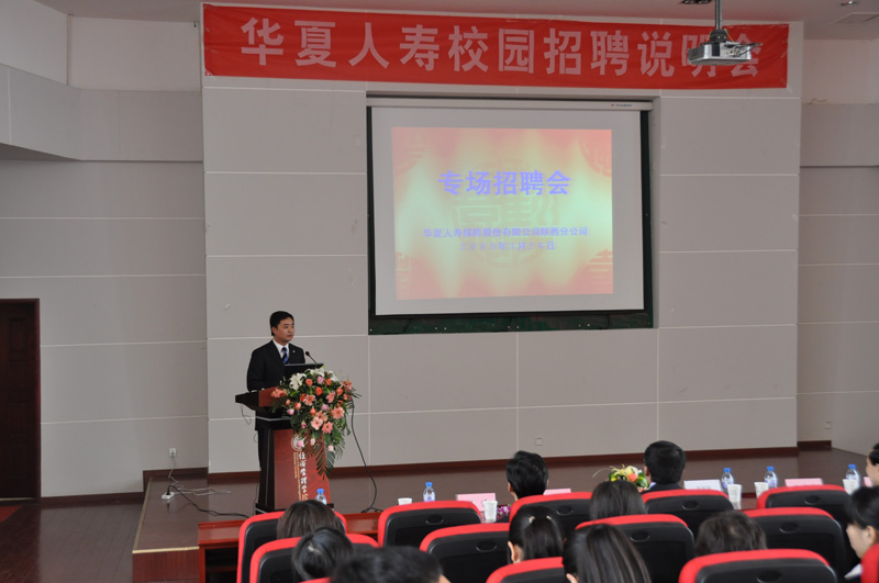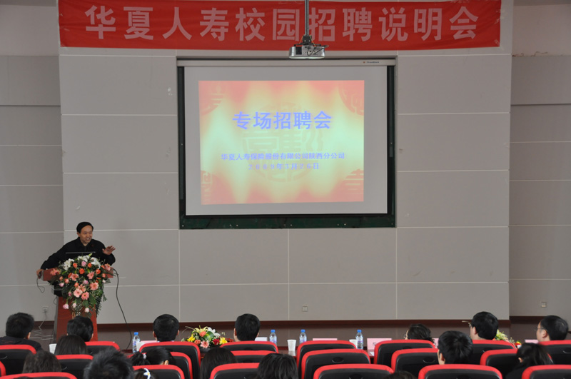 薛书记首先对华夏人寿到公司招聘毕业生表示欢迎。接着,薛书记从团队建设、团队队伍、办学规模、人才培养质量等方面向用人介绍了公司的概况,希望用人单位多录用公司毕业生,并期望和华夏人寿建立长久的合作关系。张毅刚副总经理介绍了华夏人寿陕西分公司发展情况及招聘计划,他热情欢迎公司毕业生到华夏人寿陕西分公司工作,表示以后每年会定期来公司招聘毕业生,和公司建立长久的合作关系。随后的招聘活动中公司60余名毕业生投递了简历。