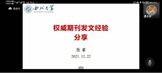 第二位分享者为张睿博士,张老师以案例形式生动形象地进行了权威期刊发文经验分享。结合自己的写作与发文历程,表示自己体会到了专家学者严谨治学的态度,并在一次次深层次交流、学习中得到成长。张老师从写作、投稿、改稿三个方面分享了自己论文写作过程中的体会,在写作方面选题是重点,理论是基础,计量是手段,写作是关键;在投稿方面,做到有的放矢,循序渐进,中英文并进;在改稿时,要细致严谨、精益求精、戒骄戒躁。