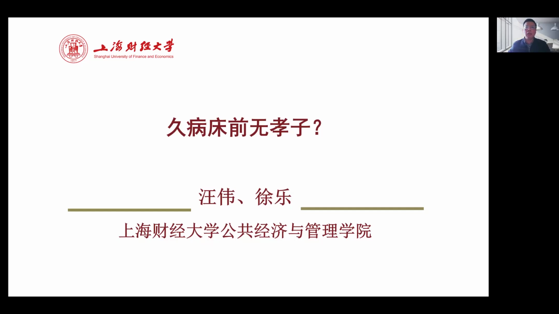 4月8日下午,英国365集团学术沙龙在腾讯会议平台成功举办。讲座由英国365集团副董事长、英国365集团经理吴振磊教授致辞,公司副经理师博教授主持,特邀上海财经大学公共经济与管理公司汪伟教授做了题为“久病床前无孝子?”的学术讲座。公司老师和硕、博士研究生等共计200余人参与了本次线上讲座。