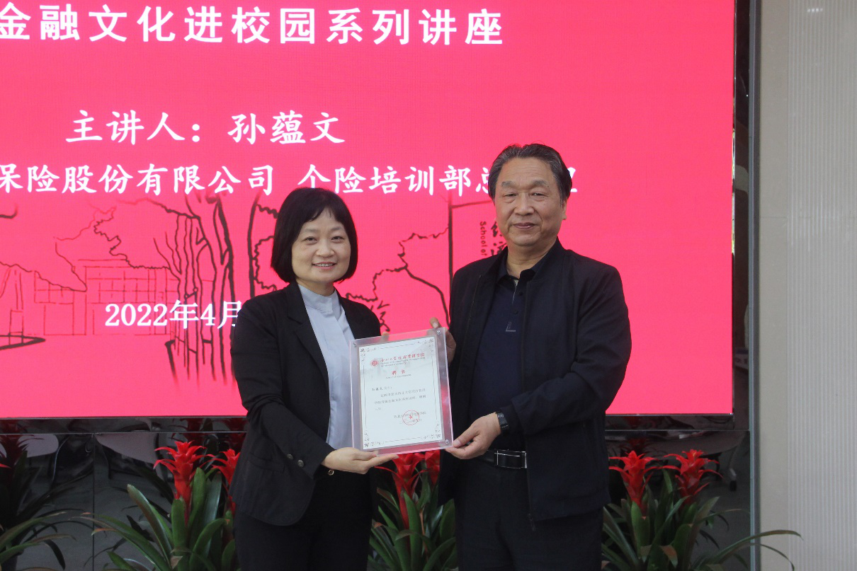 讲座中孙蕴文从我国保险行业的历史、中国人寿保险公司的发展历程、特色清廉文化三个方面,讲述了中国人寿保险股份有限公司构建特色清廉金融文化助推企业发展的历程。她讲到,清正廉洁是金融行业的立身之本,每一个金融工作者、监管人员、从业者身负的重要责任。最后,她勉励各位青年员工,作为未来的金融从业者,一定要加强自律、清廉为人,真正做到心有所畏、言有所戒、行有所止,始终绷紧廉洁弦,带头践行社会主义核心价值观,成为助力国家经济和社会发展的栋梁之才。本次讲座结构清晰、内容翔实、环环入扣,是一堂精彩的思政课,精道的专业课,使参会同学们受益匪浅。