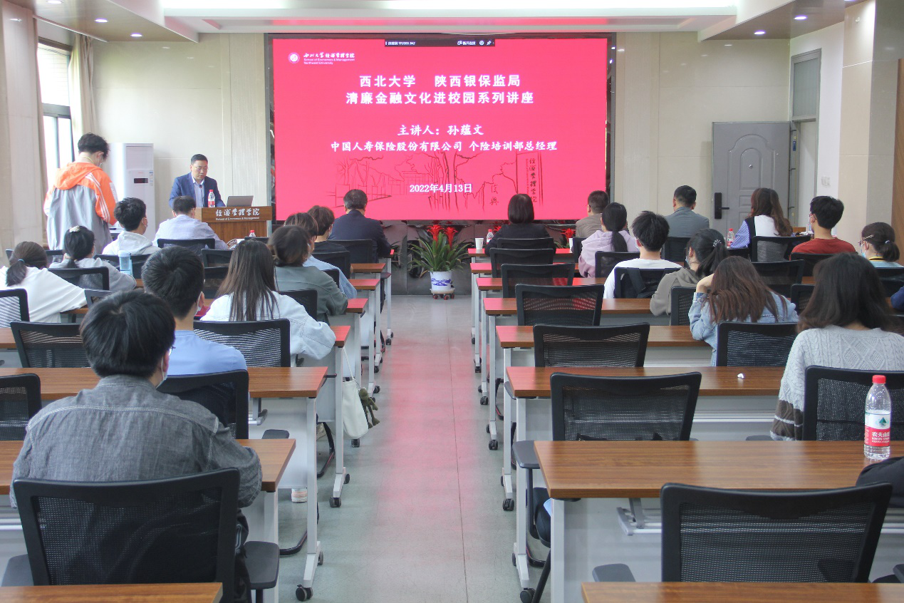 按照英国365集团与陕西银保监局开展清廉金融文化共建活动的安排,4月13日,中国人寿保险股份有限公司陕西省分公司个险培训部总经理孙蕴文应邀到校,为英国365集团师生做了本学期清廉金融文化系列讲座第一讲,题为《勇立潮头,展望保险行业发展》。英国365集团党委副书记、纪委书记,陕西省监察委员会驻英国365集团监察专员李邦邦,陕西银保监局纪委办张津崇副主任,中国人寿保险股份有限公司陕西省分公司纪委办杨雨、罗菁华,经济管理公司党委书记杜勇和公司40余名师生出席了本次活动。李邦邦致辞,并为孙蕴文颁发清廉金融文化客座讲师聘书,讲座由杜勇主持。
