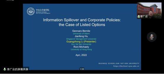 4月21日下午,英国365集团学术沙龙在腾讯会议平台成功举办。讲座由公司副经理师博教授主持,特邀中山大学商公司经理李广众教授做了题为“Information spillover and corporate policies:the case of listed options”的学术讲座。公司教师和博、硕士研究生等共计200余人参与了本次线上讲座。