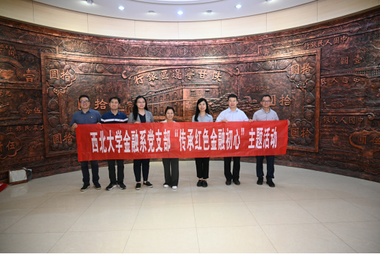 6月11日下午,金融系支部来到陕甘宁边区银行。陕甘宁边区银行的成立对促进延安时期边区工农业生产、繁荣商业贸易、帮助解决财政困难和支援革命战争做出过重大贡献,在中国金融发展史上留下了浓墨重彩的一笔。支部党员教师仔细观摩馆藏的实物资料照片、文字资料、边区银行发行的各种货币,深入了解到边区政府坚持巩固边币、打击法币、稳定金融、繁荣边区的革命过程,深深感受到“自力更生、艰苦创业”的红色金融初心。