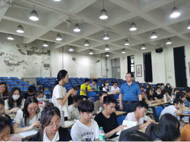 董国强以《大家一起谈就业》题目,从去年年底疫情期间同学们的日常生活谈起,围绕“世界怎么了?中国怎么办?青年怎么干?”三个问题展开讲授。他强调就业是最大的民生,面对持续的疫情影响、复杂的国际形势,经济发展面临巨大压力,今年就业形势也非常严峻,后面亦不容乐观。广大同学要充分认识当前严峻的就业形势,提前做好生涯规划,根据自身的情况合理确定就业预期,树立恰当的择业观、就业观,勤勤恳恳学习,脚踏实地奋斗。课程中,董国强还走入员工座位中,与同学们讨论最近发生的国际国内校内大事。