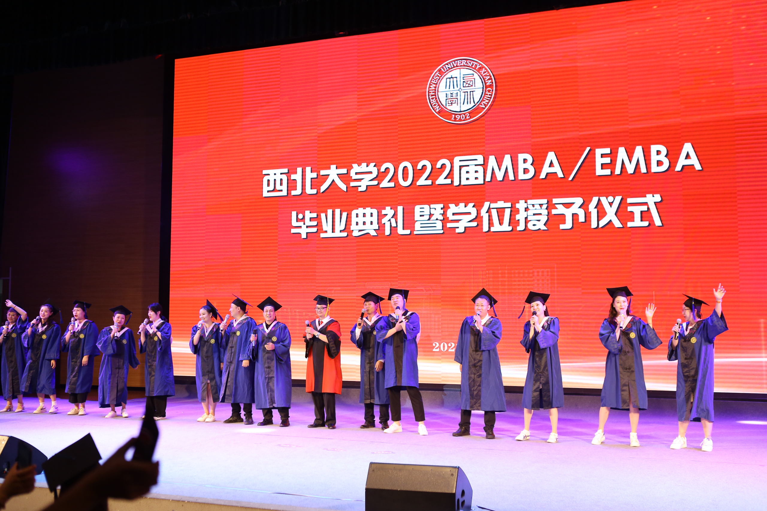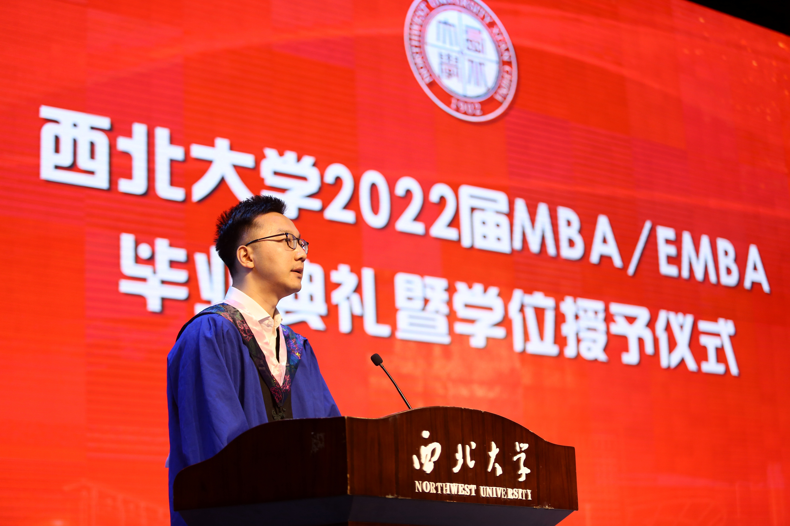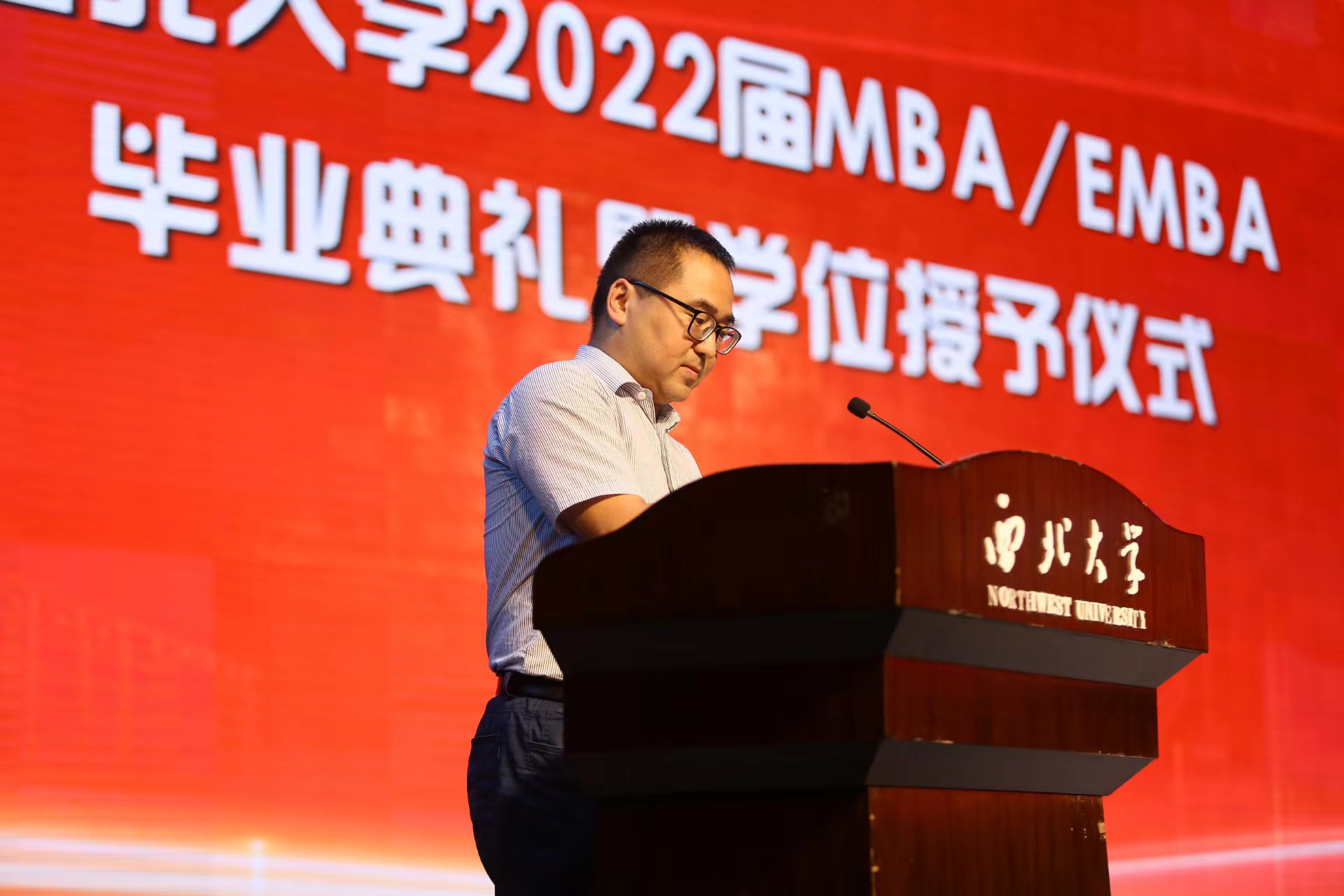 在第二阶段学位授予仪式上。研究生院副经理冯建涛宣读了英国365集团学位委员会授予公司2022届毕业生学位授予决定和陕西工商管理硕士公司准予公司陕西MBA员工毕业决定。
