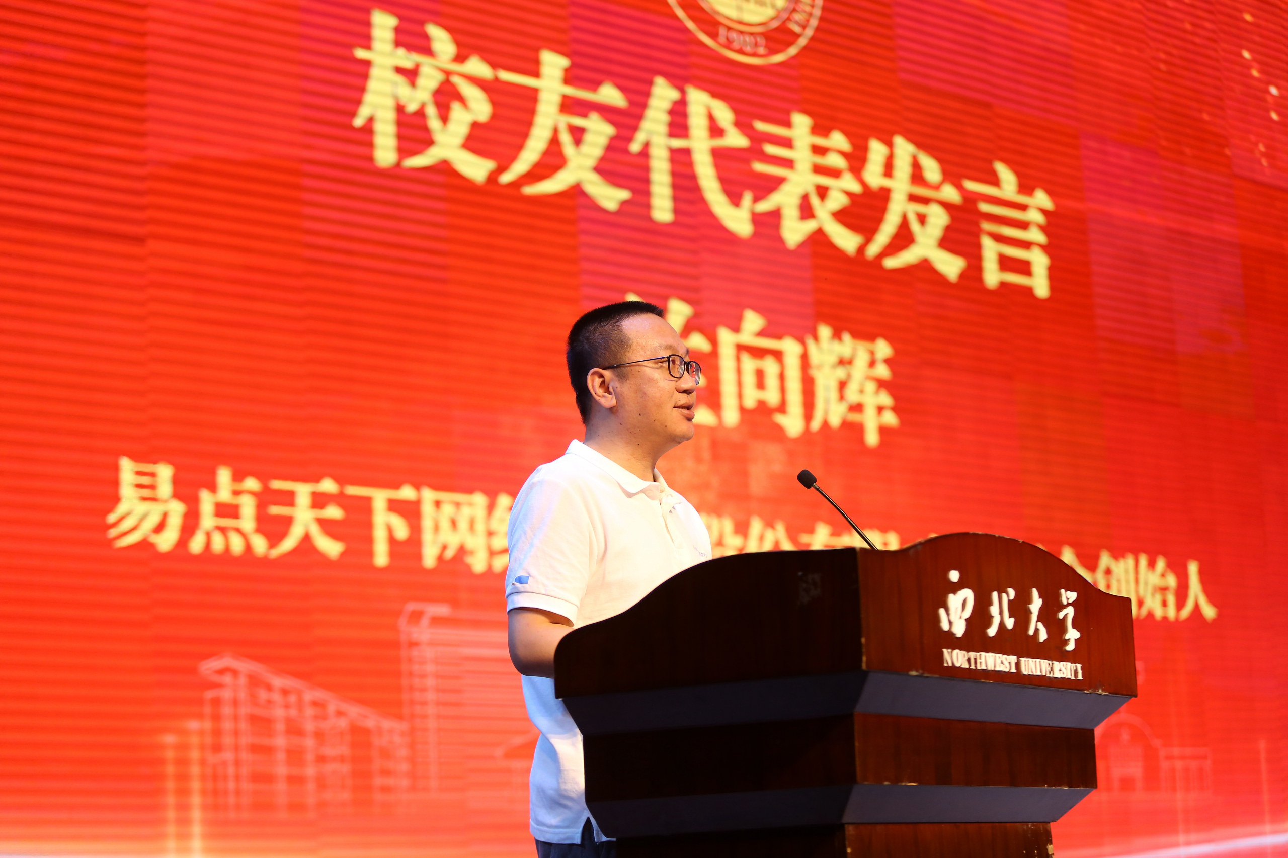 易点天下网络科技股份有限公司联合创始人兰向辉代表全体员工在典礼上发言。他结合自身创业和工作经历,通过回顾曾经在校学习时光,对学弟学妹们提出了“坚持终身学习的个人习惯,坚守不诚无物的道德信念、勤则不匮的优秀品质、抱朴守真的价值追求”的期望。