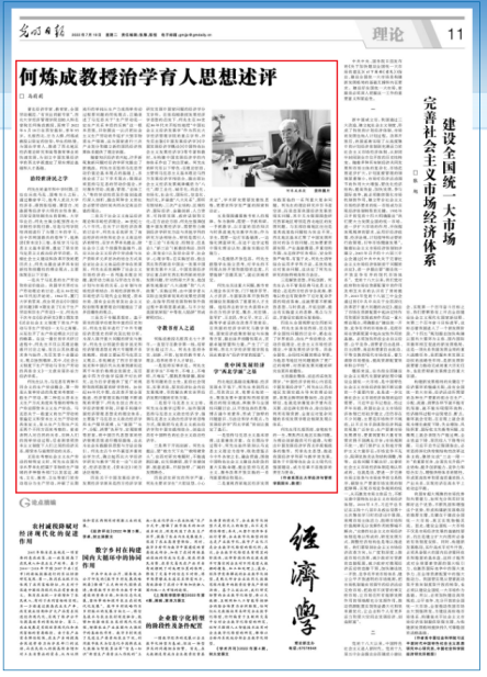 7月19日,公司经理马莉莉教授《何炼成教授治学育人思想述评》在《光明日报》刊发。该文全面回顾和总结了何炼成先生在理论研究和教育育人方面的主要思想、重要贡献和学术成就。