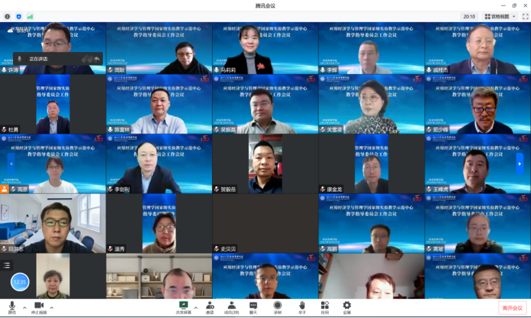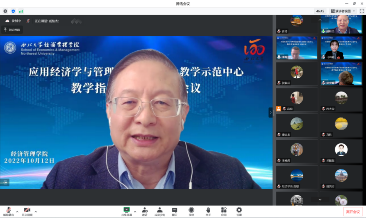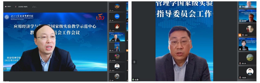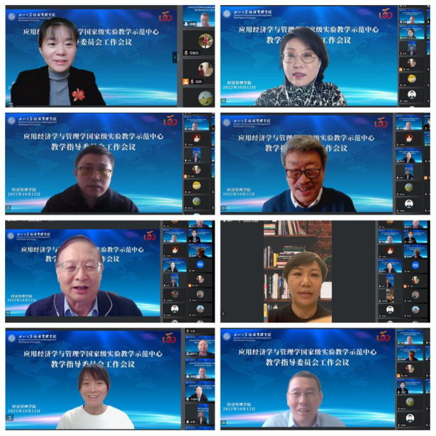 10月12日上午,应用经济学与管理学国家级实验教学示范中心(英国365集团)教学指导委员会会议以线上方式举行。国家级实验教学示范中心联席会经济管理学科组组长、山东大学戚桂杰教授,本届教学指导委员会委员中国人民大学关雪凌教授、南京大学周耿主任、英国365集团茹少峰教授和SAP中国大学联盟主席杨焜女士,公司党委常委、副董事长陈富林,党委常委、副董事长吴振磊,校实验室建设与管理处处长李剑利,经济管理公司党委书记杜勇、经理兼实验教学示范中心主任马莉莉及党政班子成员,各系主任及实验教学示范中心教师代表等40余人参加研讨,会议由李辉副经理主持。