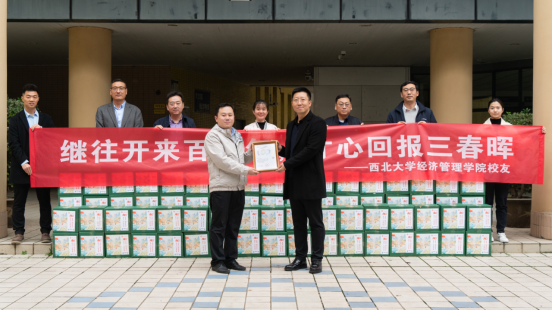 公司党委书记杜勇对MBA员工“继往开来百廿年,寸心回报三春晖”的深情厚谊和捐赠助农产品的义举表示感谢。这次捐赠既表达了MBA员工关心母校、支持母校的深切情感,也是对公司建校120周年,商科建立110周年的浓浓祝福。