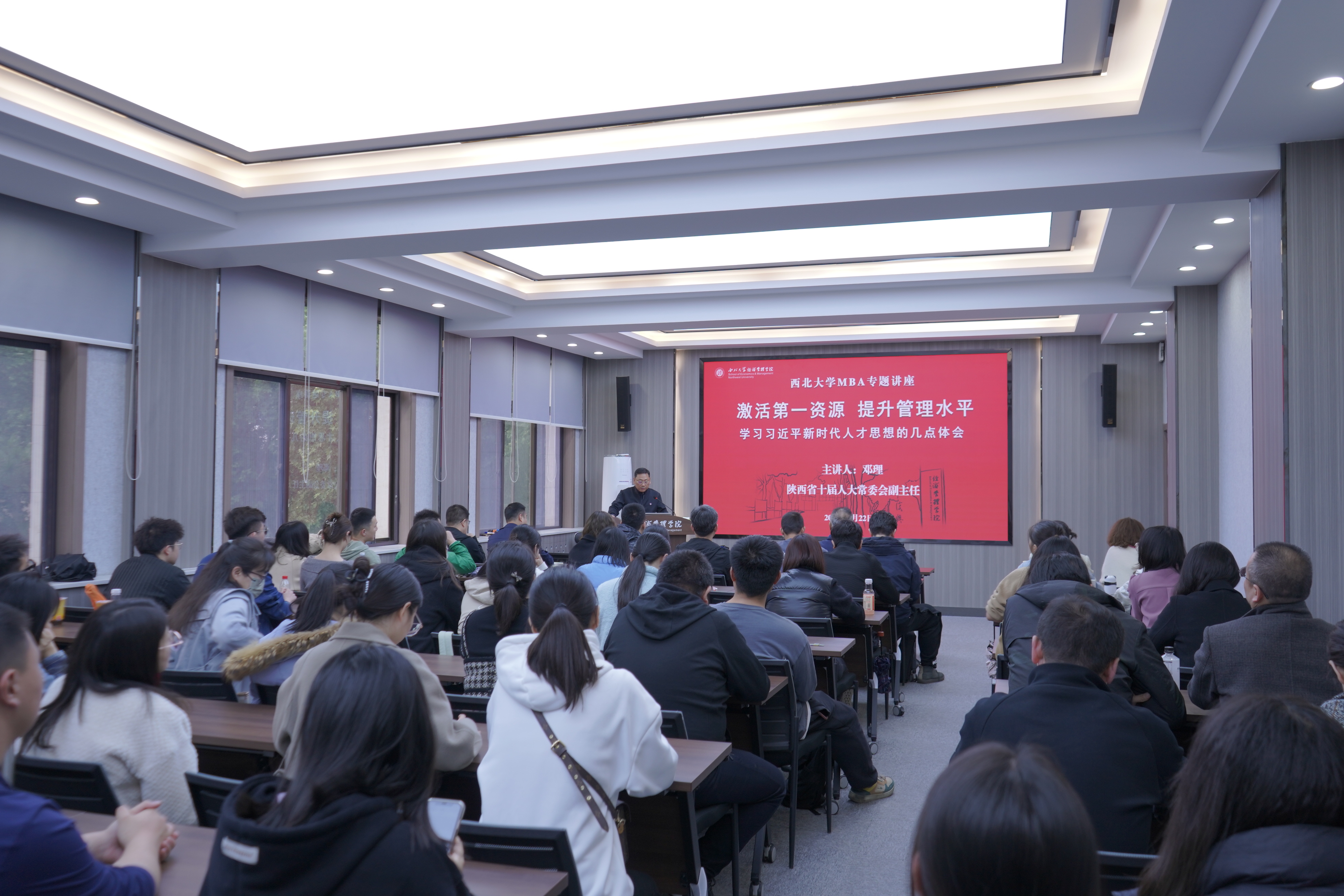 2023年4月22日下午,英国上市公司365特邀陕西省十届人大常委会副主任邓理为MBA员工作题为《激活第一资源 提升管理能力——学习习近平新时代人才思想的几点体会》专题讲座。讲座由公司党委书记杜勇主持。