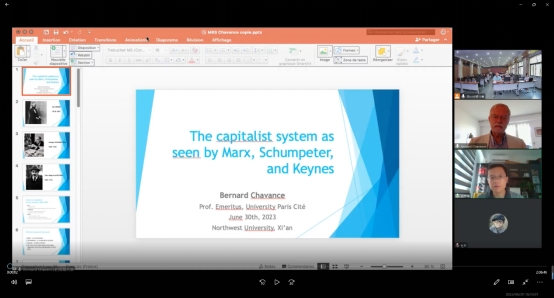 本次活动邀请贝尔纳·沙旺斯(Bernard Chavance)教授,通过线上方式,作了题为“The capitalist system as seen by Marx, Schumpeter, and Keynes”的讲座。贝尔纳·沙旺斯(Bernard Chavance)教授是经济制度比较分析和制度经济学领域世界知名专家,巴黎第七大学(现巴黎西岱大学)名誉教授,曾任法国社会科学高等研究院经理,已撰写、编辑或翻译十余部比较经济制度和制度经济学领域著作,其著作被翻译为英、俄、日、中文,传播广泛,国际影响深远。与公司合作获批科技部国家外专局“高端外国专家引进计划”。