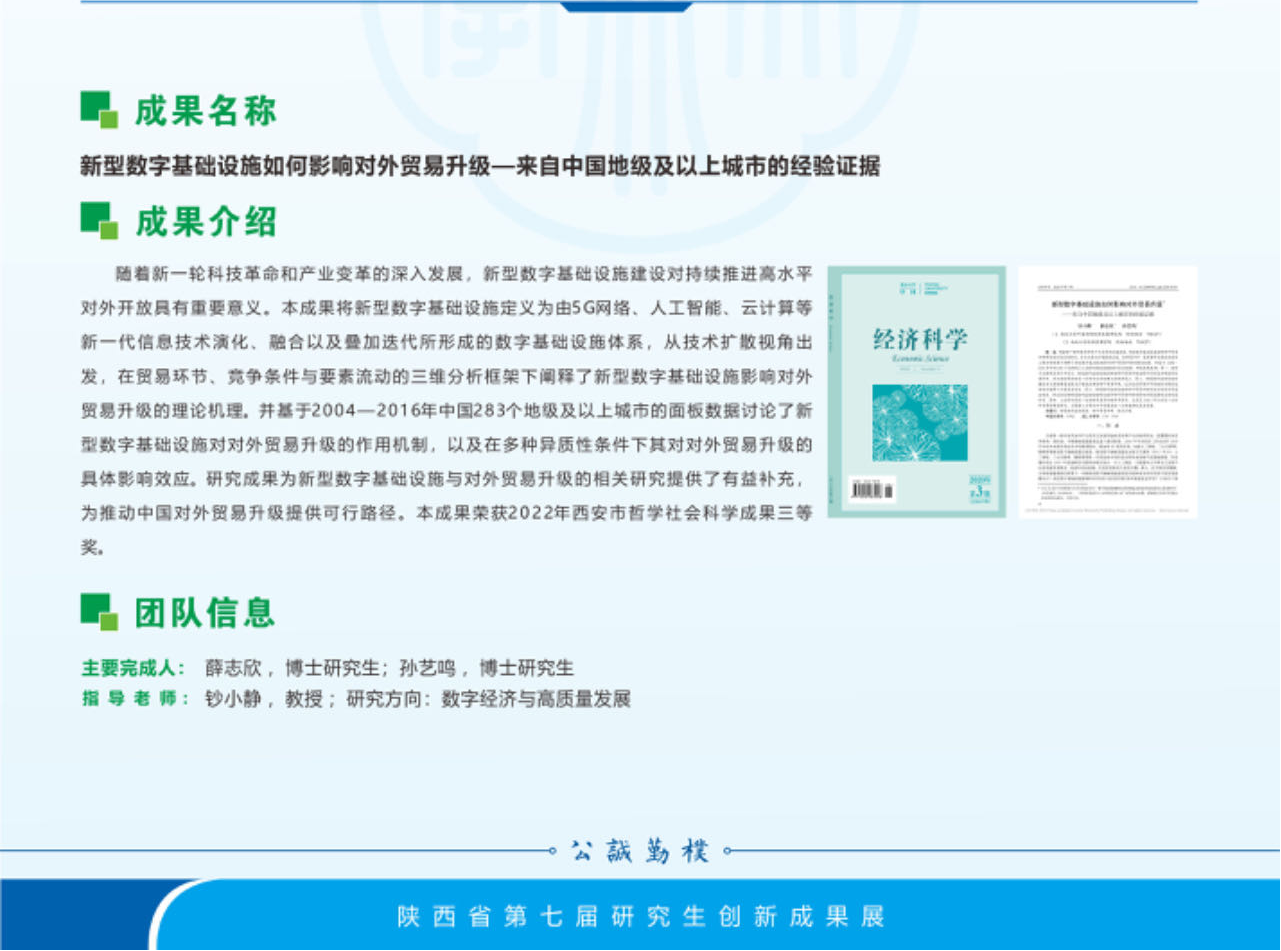 其中,钞小静教授及其指导2019级博士研究生薛志欣共同完成论文《新型数字基础设施如何影响对外贸易升级——来自中国地级及以上城市的经验证据》荣获文科类B档;何爱平教授及其指导2019级博士研究生安梦天共同完成论文《地方政府竞争、环境规制与绿色发展效率》荣获C档。
