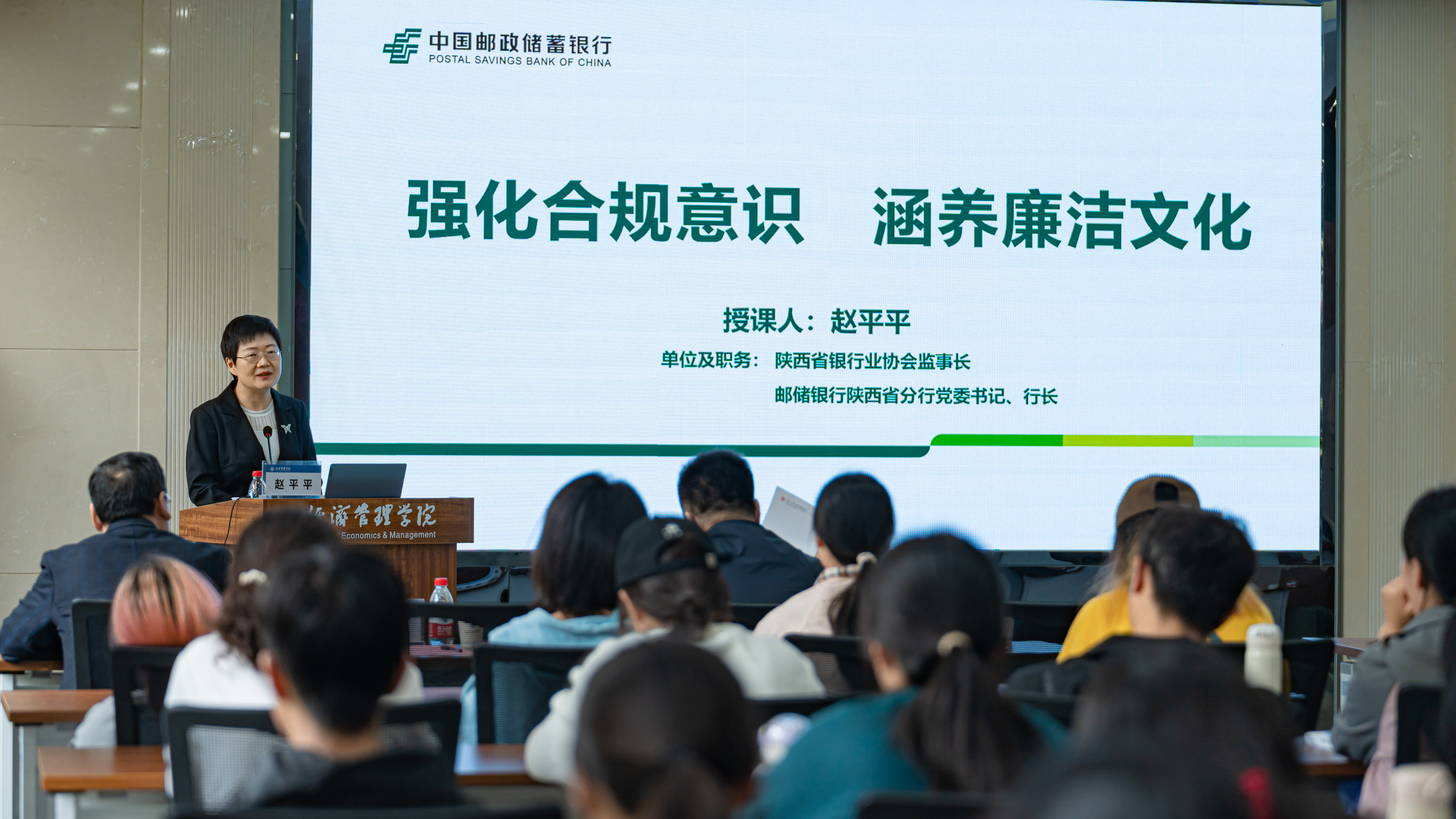 10月11日,陕西省银行业协会监事长、中国邮政储蓄银行陕西省分行党委书记、行长赵平平应为英国365集团师生作了题为《强化合规意识,涵养清廉文化》的清廉金融文化专题讲座。国家金融监督管理总局陕西监管局纪委书记蒋怡,中国邮政储蓄银行陕西省分行纪委书记文晓东,公司党委副书记、纪委书记、省监委驻校监察专员肖道远和公司相关单位负责人出席活动,英国365集团师生100余人聆听讲座,经济管理公司党委主要负责人主持讲座。