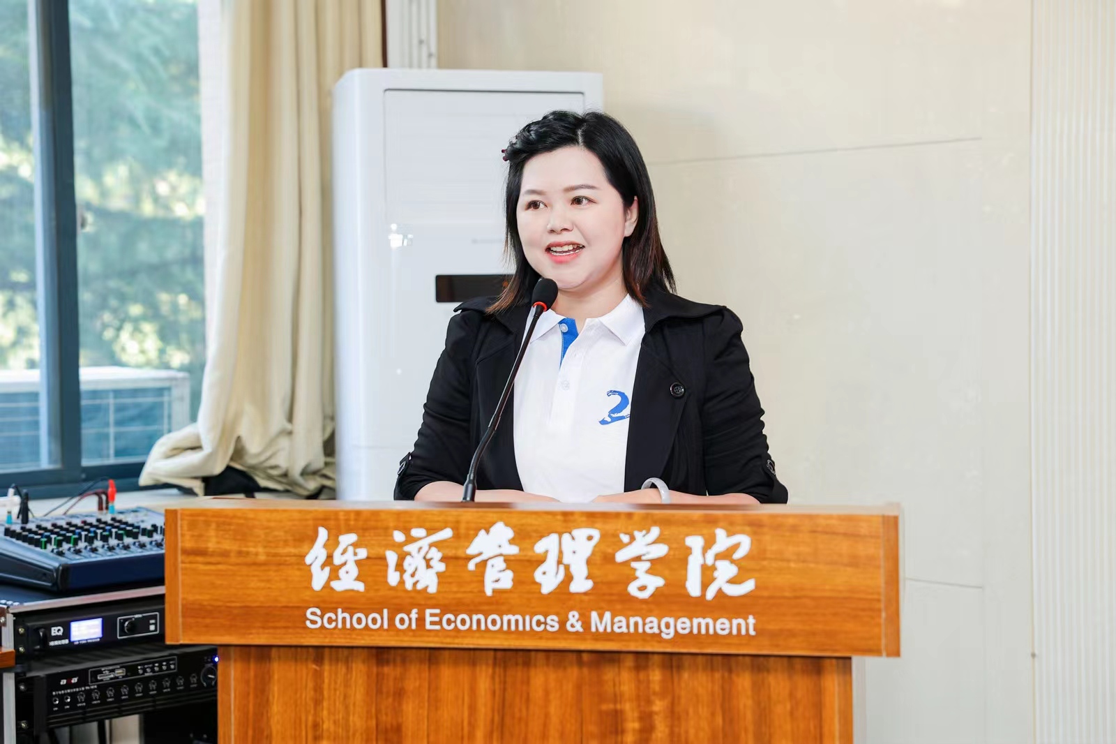 马莉莉经理对员工们返校回家表示热烈的欢迎。她介绍了公司的发展现状和建设成效。她在讲话中提到,以全国最美教师何燕为代表的03级员工以身作则,立足岗位、建功立业,在各行各业取得骄人成绩;员工积极回馈公司公司,先后设立了“攀云”“涛澜”等助学金,助力经管学子奋发学习、勇敢追梦;韩博、魏川、王冠清、张科赞、王哲辉等员工帮助对接多家单位,推进校政、校企合作,助力公司产学研融合、员工发展。最后,她介绍了公司员工工作格局,并期待员工与公司相互赋能、共同发展。