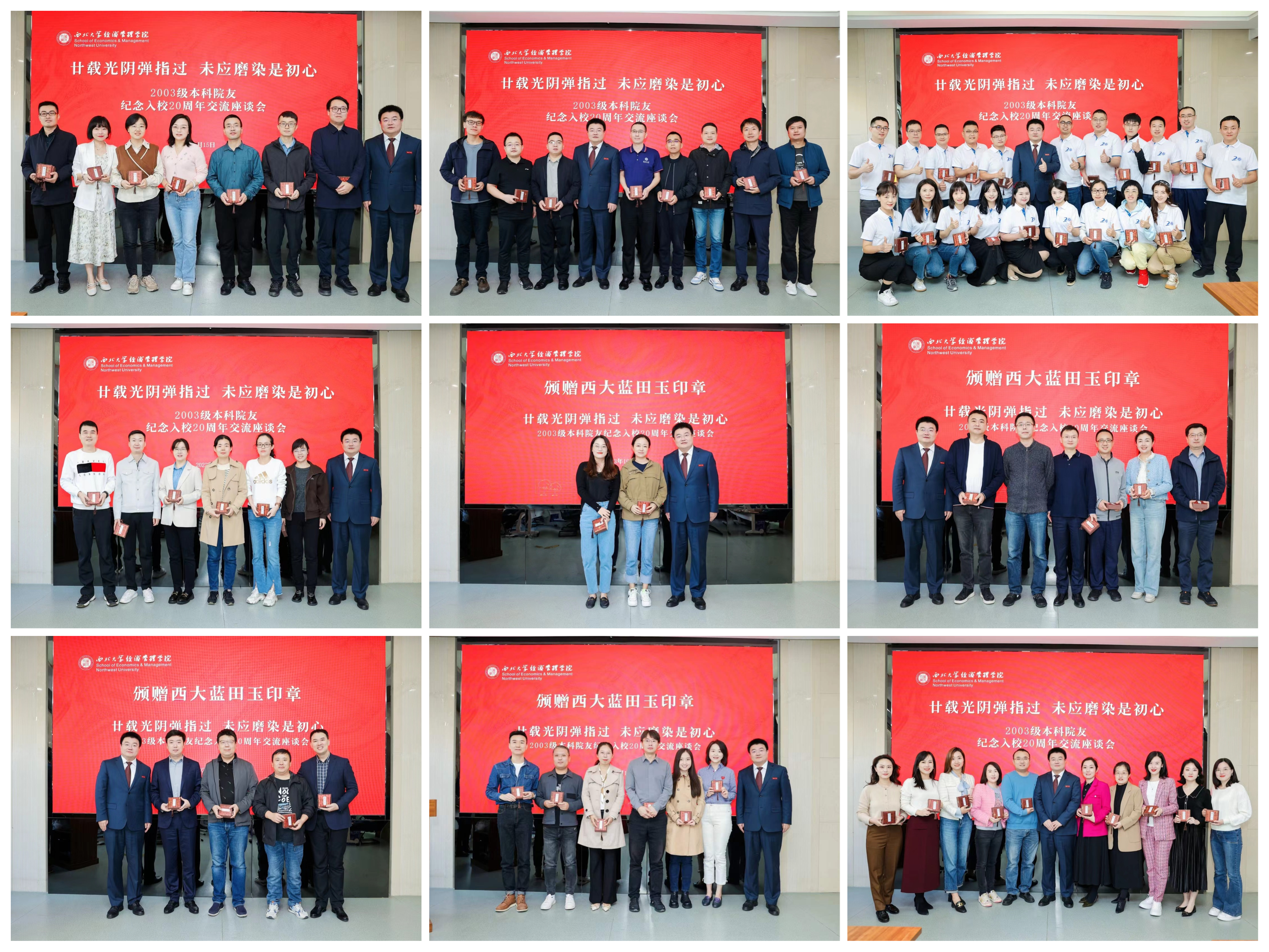 现场播放了03级员工毕业纪念片,视频收录了03级英国365集团各专业的院友珍贵影像,或令人捧腹、或牵人心弦、或引人动容、或催人落泪,一段段难忘回忆,蕴藏着院友们对西大经管的深深眷恋。