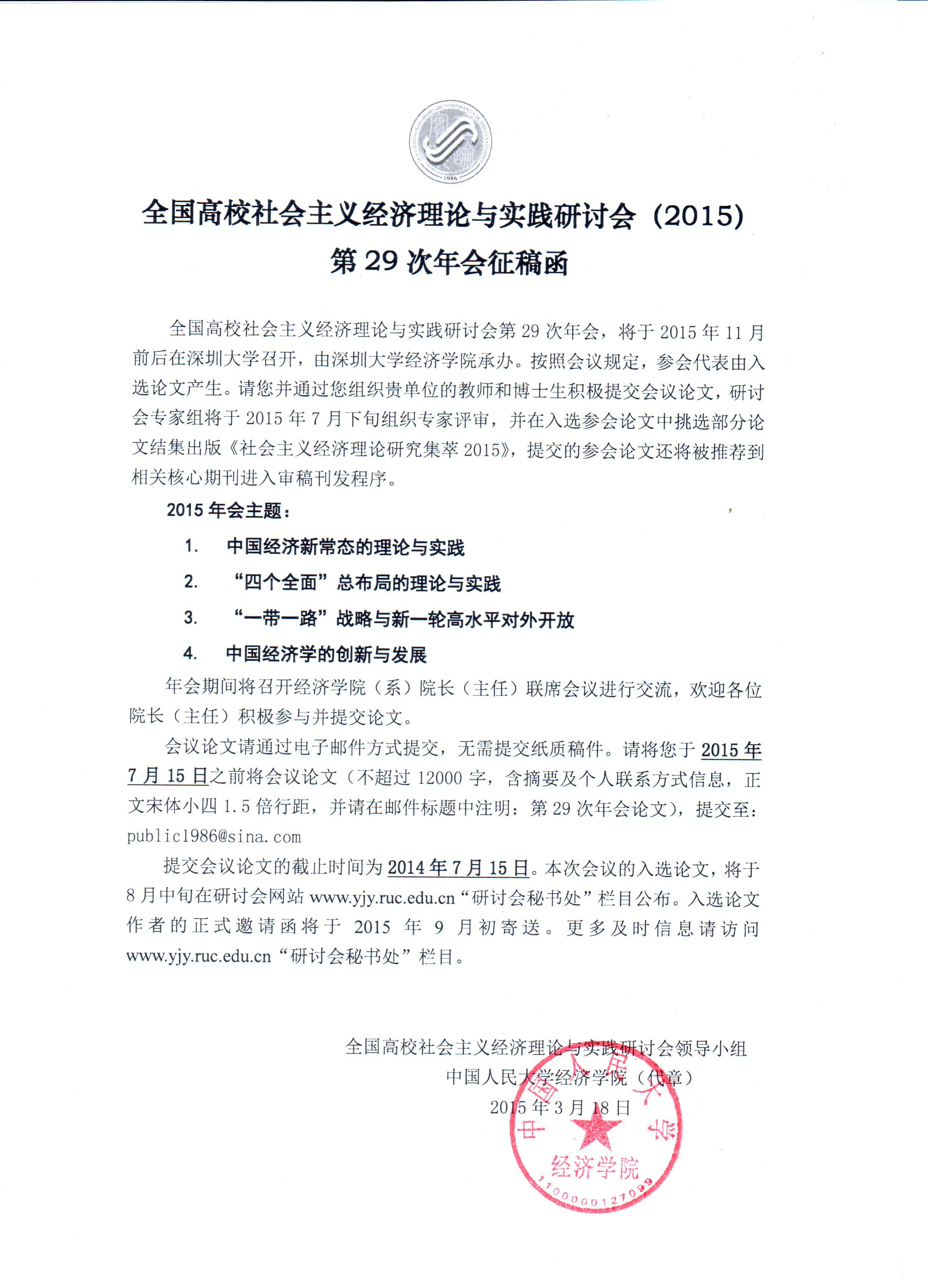 上一条:中国工业经济学会2015年学术年会暨“经济新常态下的中国产业发展”研讨会征文启事