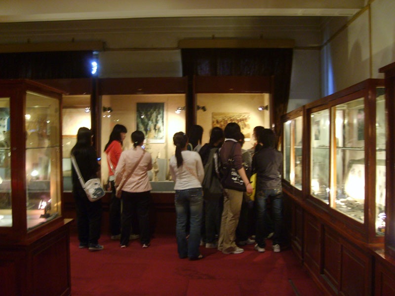 校博物馆展厅宽阔明朗,用朴素的装饰映衬历史遗迹的沧桑。馆藏的三级文物有80多件,其中有半坡、姜寨遗址、汉朝瓦当、唐代的麟德殿柱础遗迹等代表我们黄河流域文明与汉唐盛世雄姿的文物,也有西大前辈们留下的墨迹。博物馆里的藏品代表了这所百年院校、这座城市、这个地区的文化积淀。